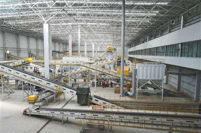 昨日,記者在朝陽建筑垃圾再生資源化處置中心,工人正在調試設備。記者看到,整個建筑垃圾再生資源化處置中心分為幾個部分,有來料儲存間、生產加工間,還有存放成品建筑材料的倉庫。生產加工的車間有三四層樓高,里面安裝了很多帶有傳送帶的大型設備。廠房周邊,還有幾棟建筑正在收尾,工人將外露的地面,用防風紗網蓋住。