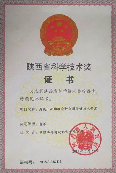 近日,陜西省人民政府舉辦科技創新大會暨科學技術獎勵大會,表彰2018年度陜西省科學技術獎。北方公司參與完成的“混凝土礦物摻和料應用關鍵技術開發”項目獲三等獎。