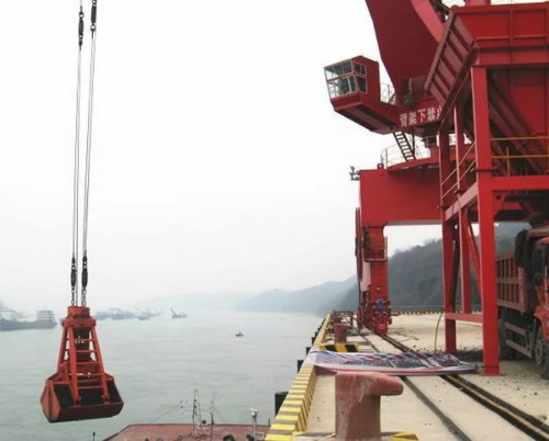 4月17日上午8時,一艘滿載3000噸砂石的船舶??吭谛碌叹C合碼頭1#泊位,一臺起重機伸出“手臂”,抓起砂石裝到碼頭上等待的大貨車上。10分鐘后,大貨車駛向正在施工的江北高速公路。