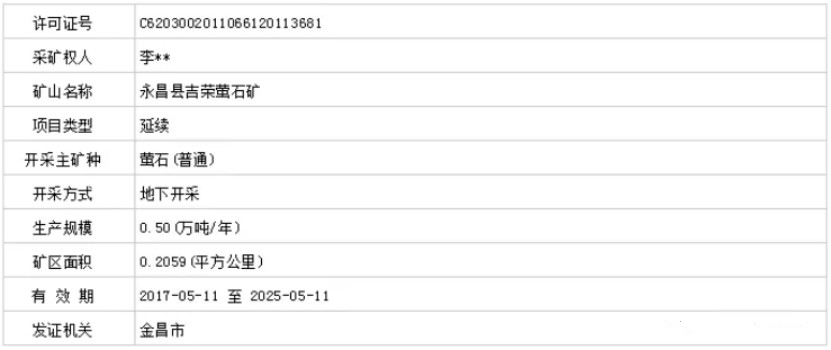 但是,實踐中,很少見到自然人作為建筑用礦的采礦權人,而在不同省區個案中不時看到自然人成為螢石礦、鐵礦、石英礦、石煤等礦種的采礦權人。例如,甘肅省金昌市頒發的永昌縣吉榮螢石礦、湖南省常德市頒發的石煤礦采礦權人都是自然人。
