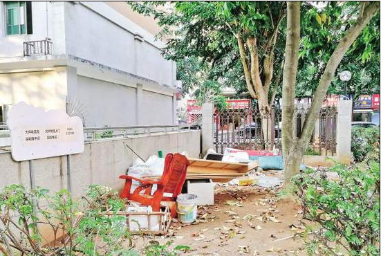 在不少小區,記者都看到了類似的堆放點,一般設置在不影響車輛、行人經過的空地。有的小區會設置醒目的牌子進行引導,例如蓮花花園內的堆放點寫著“大件物品及雜物集中點”的字樣,還附上了上門回收的電話號碼。