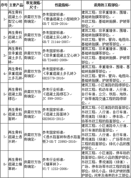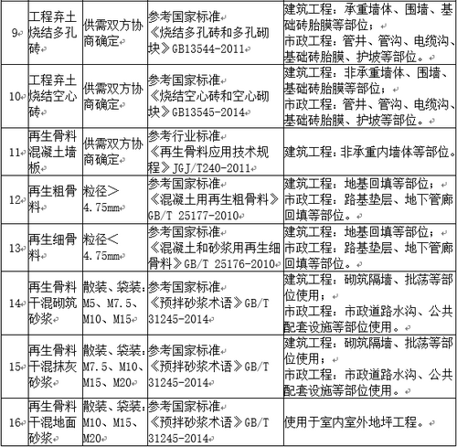 北京市《關于調整建筑廢棄物再生產品種類及應用工程部位的通知》,規定再生粗細骨料應用部位為: