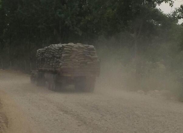 裝滿石料的貨車過后,街道里揚塵彌漫