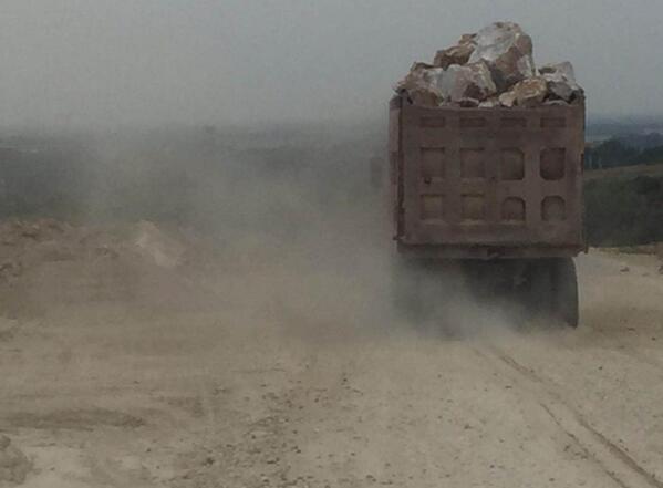 據當地一帶領媒體的村民說道:“他們這礦區膽子很大,就是在上級環保督查組進駐期間,他們仍然在瘋狂開采,揚塵污染特別嚴重,生態環境遭到了嚴重的破壞,每天有上百輛的貨車在這公路上經過,你們看看,這大貨車一過,看看那飄起來的揚塵,過往的貨車都被揚塵淹沒了,整天生活在這樣的環境下,當地群眾也多次向有關部門反映,就是不見整改,反映后還是那樣,沒辦法。”