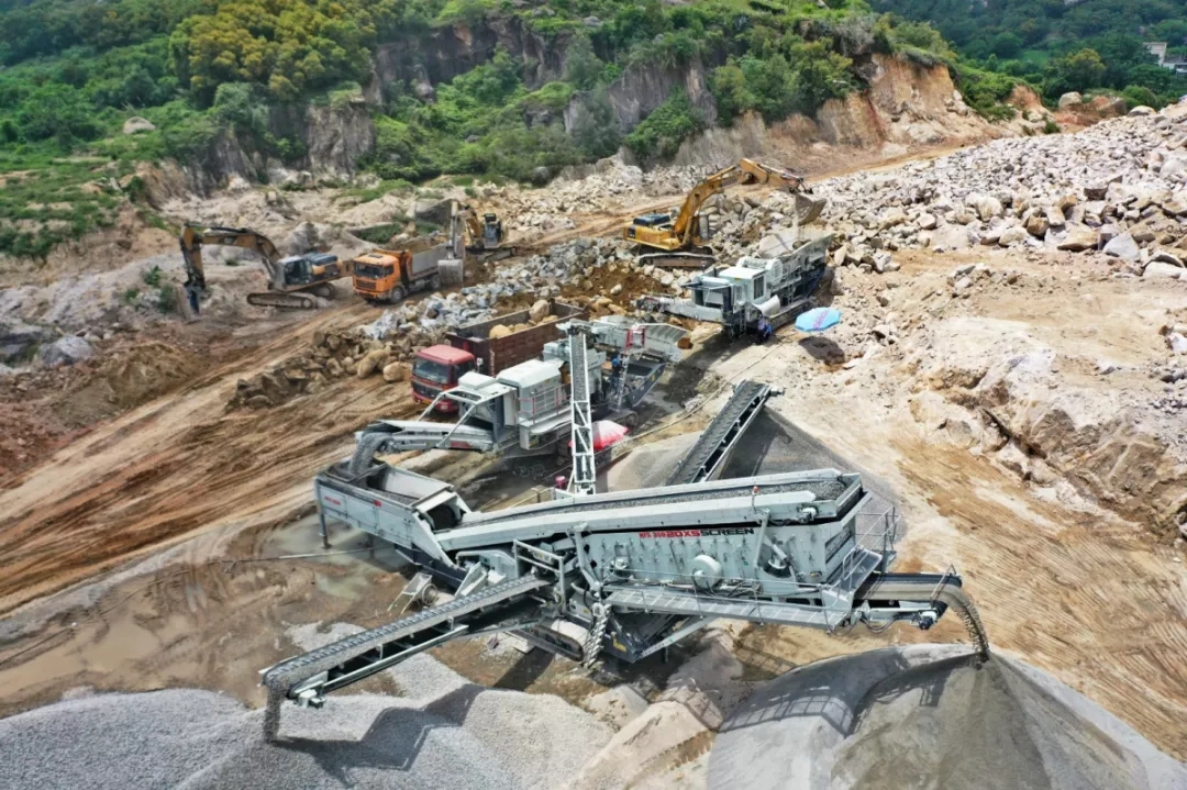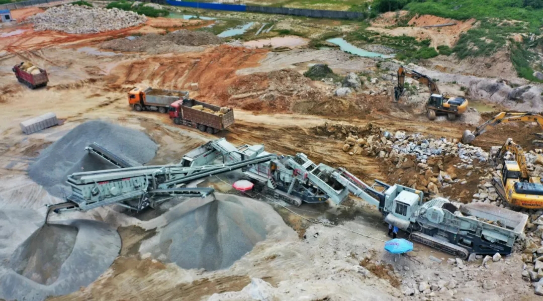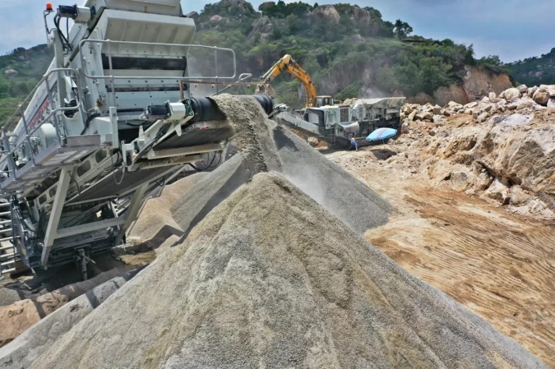 該項目處于冷鏈廠建設前期,在場地平整時,山體爆破將產生大量的優質石料,若直接作為毛石出售,則價格低廉,利潤空間較小。因此,在砂石骨料稀缺的大環境下,客戶選擇了南方路機履帶移動式破碎篩分設備,將爆破后的毛石現場破碎篩分成優質的砂石骨料,然后外售給攪拌站,生產線收益豐厚。