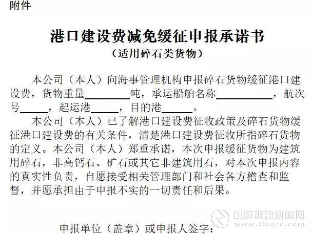 《通知》要求,規范碎石類貨物港口建設費緩征申報。 繳費人(或其代理人)申報碎石類貨物港口建設費緩征時,應向港口建設費征收單位(包括直收和代收站點)提供下列材料:港口建設費減免緩征申報表、貨物購銷合同(或協議)、承運合同(或協議)、貨物產地證明、貨物用途證明或貨主書面承諾書等。 必要時可要求提供具備資質的檢驗機構的貨物檢驗報告(需注明建筑用碎石、卵石)。涉及國外進出口的,還應提交海關相關單證。