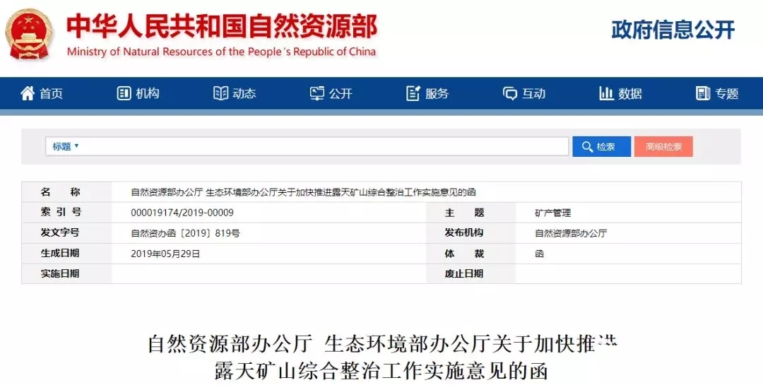自然資源部和生態環境部兩部委發函要求,嚴格控制新建露天礦山建設項目,重點區域原則上禁止新建露天礦山建設項目。