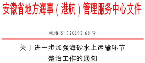 近期,安徽省海事下發《關于進一步加強海砂水上運輸環節整治工作的通知》。要求: