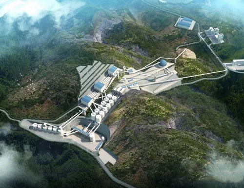 要說土石方開挖量刷新了記錄,那么該工程地質結構之復雜、施工難度之大更會讓人望而卻步。就拿上山道路來說,要在山頂開鑿豎向溜井,建設溜井平臺,從山底修建一條直通山頂的道路是項目建設必不可少的一環,面對垂直高度近300米,山體坡度接近90度的陡坡,修建難度可想而之。據項目施工人員回憶,在前期的測繪放線過程中,陡峭的山坡上測繪人員無法站立,全站儀等設備更無用武之地,只有采用DPS進行測量放線。施工過程中,首先要對山體進行打孔爆破,而笨重的打孔設備全都是靠人力運送上去……