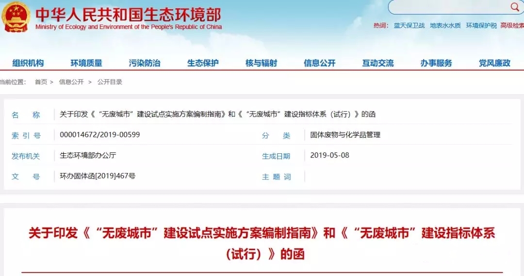 為貫徹落實《國務院辦公廳關于印發“無廢城市”建設試點工作方案的通知》(國辦發﹝2018﹞128號)相關要求,生態環境部研究制定了《“無廢城市”建設試點實施方案編制指南》和《“無廢城市”建設指標體系(試行)》。那么,什么是“無廢城市”?難道以后城市里就不允許廢物的出現了嗎?國家為什么如此重視“無廢城市”建設?