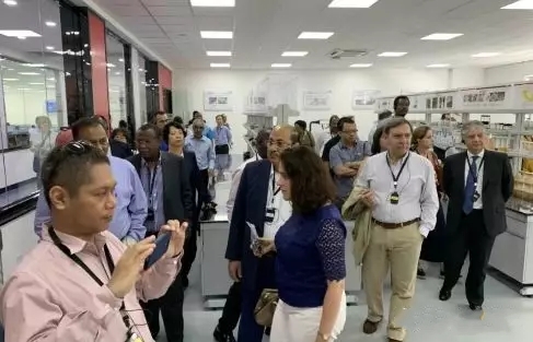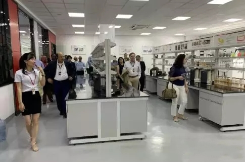 使節團一行先后參觀了南方路機技術產品展廳、攪拌學院、研發中心、實驗中心。南方路機方慶熙董事長向到訪使節團介紹了公司產業格局、研發及設備制造實力、海外市場開拓等情況。近年來,南方路機借助中國一帶一路戰略的深入推進,深化海外市場的發展戰略布局,精耕細作,產品銷售已覆蓋全球70多個國家和地區,向全球用戶展現了中國品牌精工制造的良好品牌形象。