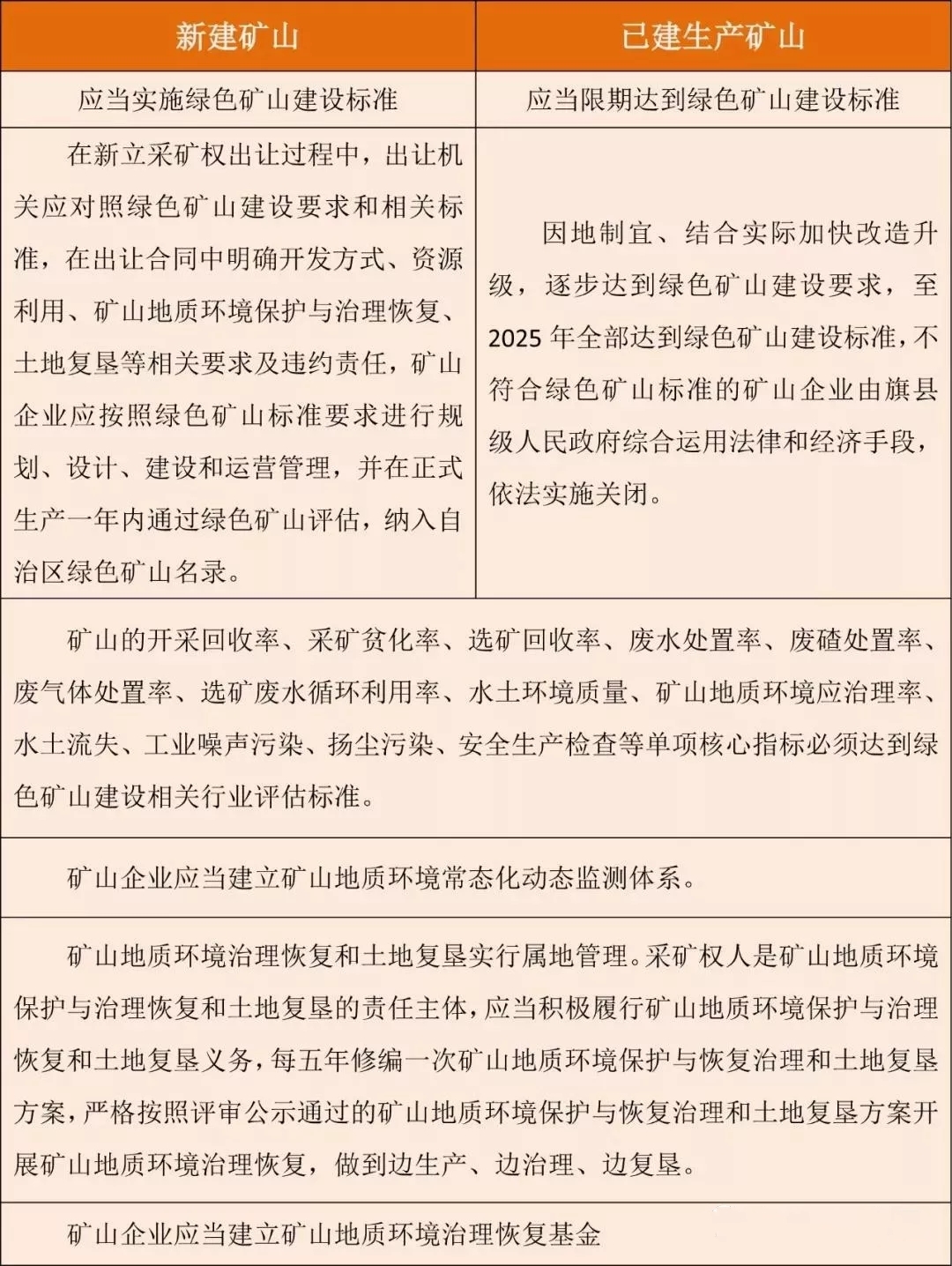 ■ 適用范圍:自治區行政區域內的綠色礦山建設、評估、名錄管理、綠色礦山評估專家及第三方評估機構管理等工作。