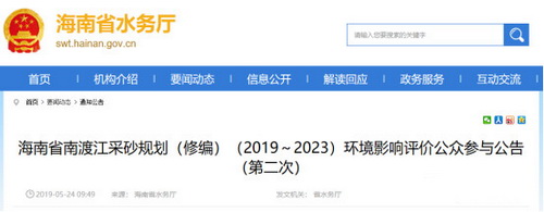 合理規劃河道采砂。2019年5月24日,海南省水務廳發布《海南省南渡江采砂規劃(修編)(2019~2023)環境影響評價公眾參與公告(第二次)》,本次采砂規劃共規劃有 10個可采區,可采砂總量496.1萬m³。