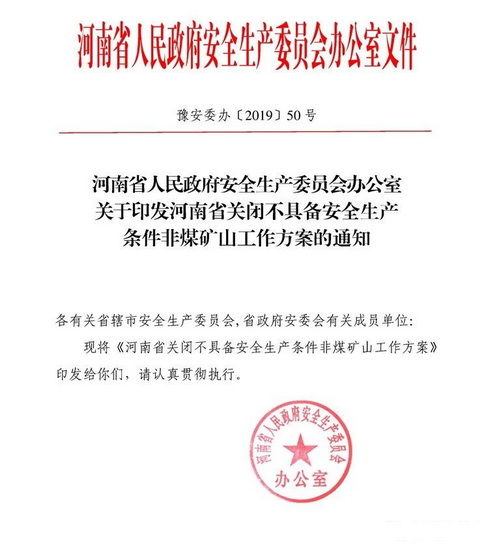 河南省安委會辦公室日前印發《河南省關閉不具備安全生產條件非煤礦山工作方案》。《方案》明確要求,到2019年年底,全省將關閉非煤礦山100個以上。