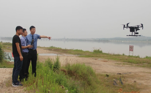 7月1日,湖南省株洲市天元區檢察院干警和該區水利部門工作人員來到湘江株洲三門鎮段,利用無人機對該區域70萬噸砂石占用河道岸線、亂堆、亂建的整改情況進行“驗收”。經無人機現場勘察,3公里河道岸線上的砂石、沙場設備及建筑物已被清理,河堤修復工作正在進行。