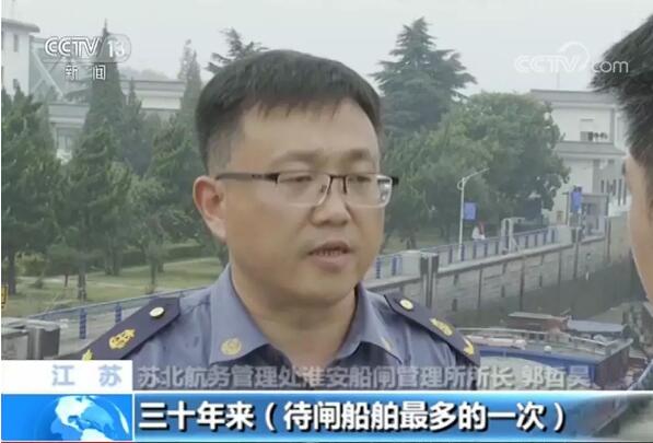 蘇北航務管理處淮安船閘管理所所長郭哲昊表示,上下游排隊等待過閘的長度加起來已經有100公里。查閱歷史資料,這是三十年來待閘船舶數量最多的一次。