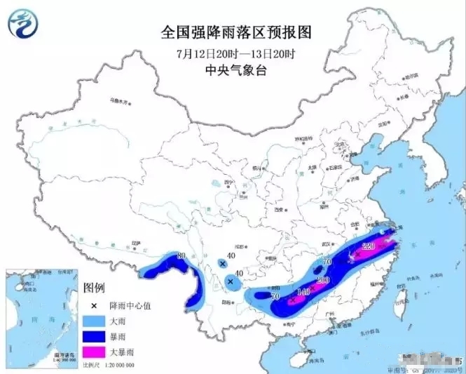 預(yù)計(jì),7月12日20時(shí)至13日20時(shí),江蘇南部、上海、安徽南部、湖北東南部、浙江中北部、江西中北部、湖南中南部和東北部、廣西北部、貴州中南部、云南西部、西藏東南部等地的部分地區(qū)有大到暴雨,其中,安徽東南部、浙江北部、江西東北部、湖南南部、廣西東北部等地局地有大暴雨(100~220毫米),上述部分地區(qū)伴有短時(shí)強(qiáng)降水(最大小時(shí)降水量20~50毫米,局地可達(dá)70毫米以上)、局地有雷暴大風(fēng)等強(qiáng)對(duì)流天氣。