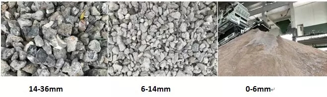 減少運輸成本及避免了二次污染,各種移動破碎篩分設備可以根據需要相互組合,生產各種再生骨料。據悉,拆除下來的建筑垃圾經料倉由振動給料機均勻喂料,輸送到建筑垃圾專用破碎機進行破碎, 破碎后的物料經振動篩篩分后,得到0-6mm,6-14mm,14-36mm三種不同規格的骨料,由皮帶機輸送到各個成品堆。每小時平均可生產190-220噸,除去設備及人力成本,此條生產線每天利潤十分可觀。
