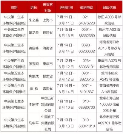 中央生態(tài)環(huán)境保護督察組分別設(shè)立專門值班電話和郵政信箱