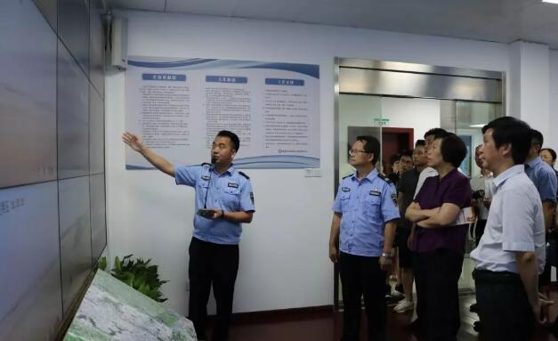 與會人員了解新建區河道采砂管理監控系統運行情況