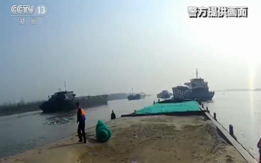今年以來,一些不法分子晝伏夜出,在當(dāng)?shù)乇I采江砂。今年三月,在接到群眾舉報后,警方果斷采取了抓捕行動。見到執(zhí)法人員,吸砂船只倉皇逃逸。