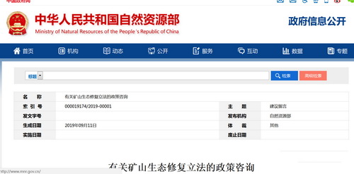 近日,自然資源部回復(fù)湖北省地方立法項(xiàng)目組在《黃石市礦山生態(tài)修復(fù)條例》草案草擬過(guò)程中對(duì)自然資源部相關(guān)政策文件理解產(chǎn)生不同意見(jiàn)的咨詢。自然資源部就國(guó)土空間生態(tài)修復(fù)規(guī)劃、國(guó)土空間生態(tài)修復(fù)專項(xiàng)資金的統(tǒng)一管理、廢棄礦山土石料處置等問(wèn)題進(jìn)行了深入解答。