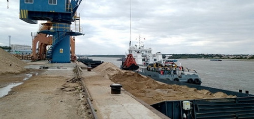 近日,黑河港所屬外貿(mào)公司采購的約2600噸江砂,由俄羅斯阿穆拉索港2艘1300噸級駁船運抵黑河港。
