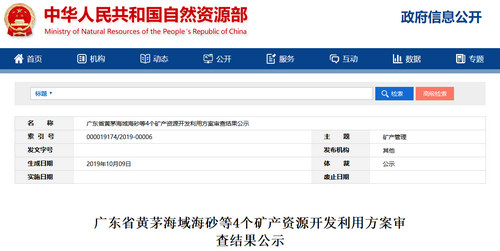 近日,自然資源部委托自然資源部油氣資源戰略研究中心組織專家對“廣東省黃茅海域海砂礦產資源開發利用方案”、“廣東省湛江東海島東海域(區塊一)海砂礦產資源開發利用方案”及“廣東省湛江東海島東海域(區塊二)海砂礦產資源開發利用方案”進行審查。其中: