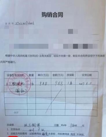 “考慮到是四川老鄉,我就回來考察了一下,當時說是廣州一家機械廠的設備。”汪先生說,幾經考慮,他便訂購了一臺,花費9.8萬元。