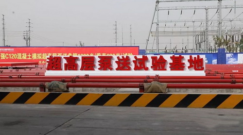 此次高強C120混凝土模擬超高層泵送盤管1800米(垂直620米)試驗是在前期公司在河西金鷹天地廣場368米泵送高度和C100強度等級混凝土生產的基礎上開展的。增加混凝土強度等級,提升泵送高度,再一次增加試驗難度,提升挑戰的新高度。