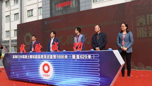 10月29日上午,隨著1800米長的盤管噴出混凝土,江蘇雙龍集團高強C120混凝土模擬超高層泵送盤管1800米(垂直620米)試驗取得成功。