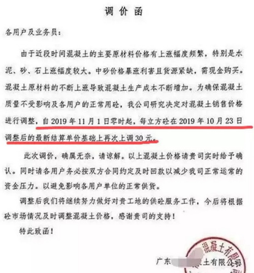 近日,受各地重污染天氣預(yù)警的影響,華東、華北、中南等多地水泥價格出現(xiàn)了多輪大幅度上漲。以廣東為例,日前廣東某混凝土公司發(fā)布調(diào)價函稱,混凝土主要原材料水泥上漲80元/噸、石子上漲20元/噸、砂子80元/噸,且主要原材料價格出現(xiàn)市場緊缺狀態(tài),導(dǎo)致混凝土原材料成本大幅上漲,已造成混凝土生產(chǎn)成本急劇增加,壓力無法承擔(dān)。
