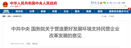 中共中央 國務(wù)院關(guān)于營造更好發(fā)展環(huán)境支持民營企業(yè)改革發(fā)展的意見