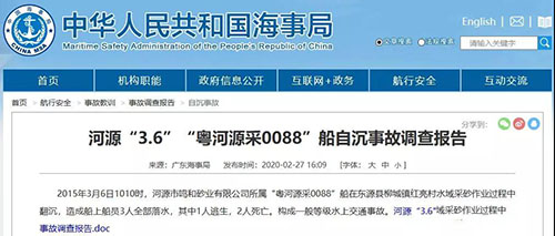 2月27日,中國海事局公開了一艘采砂船自沉事故的調查報告。