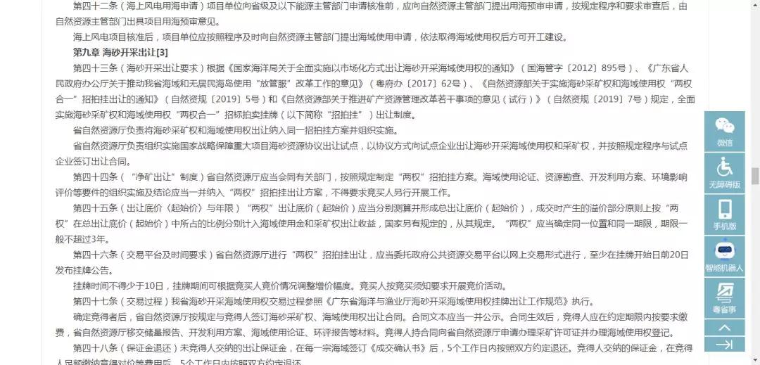 在《通知》出臺前,廣東省自然資源廳還就海洋資源的利用出臺了《廣東省項目用海政策實施工作指引》,內容對包括海砂開采在內的多種利用形式與流程做了詳細說明。