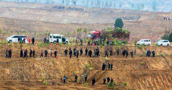 3月10日,在河南省登封市宣化鎮一鋁土礦土地復墾項目現場,工人們正忙著給路兩旁的景觀樹澆水培土,山坡上是層層梯田和滿山綠植果木。項目負責人介紹,這里是多年采石形成的廢棄礦坑,山體又高又陡,錯亂分布著松散的巖體,極不穩定。他們通過石方開挖、削坡、土石方回填、強夯、砌筑擋墻排水溝、回填種植土、苗木栽植養護等,治理面積約10萬平方米,還廢棄礦山一片綠。