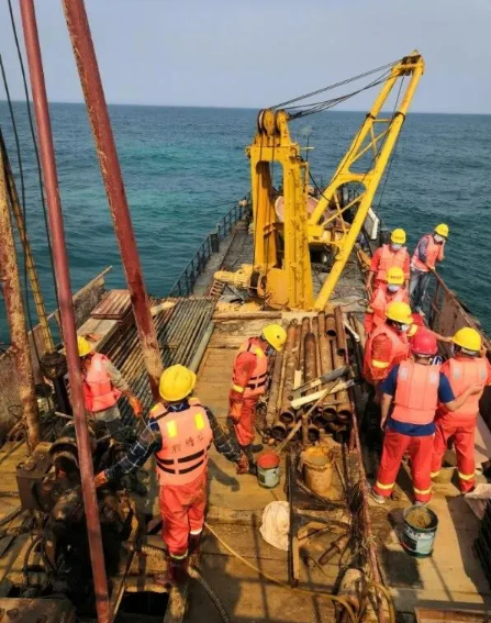 據悉,瓊州海峽東口188平方公里的海域海砂資源勘查,整個項目鉆孔31個,總進尺1000米,施工現場最深海域達40米,最淺海域也有6米,海底鉆孔最深將達50米。