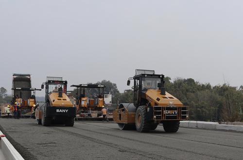 不負春光好,復工復產忙。3月16日,云茂高速路面工程現場,壓路機、攤鋪機等施工車輛開足馬力進行路面墊層工作,工人們正熱火朝天地開展施工。近段時間來,云茂高速在落實疫情防控工作的同時緊抓復工復產,根據實際情況調整施工計劃,優化配置施工資源,科學排班,搶回工期。