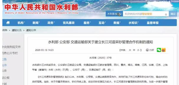 日前,水利部、公安部、交通運輸部聯合發布《關于建立長江河道采砂管理合作機制的通知》。
