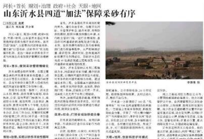 3月20日,《中國水利報》發表了《山東沂水縣四道“加法”保障采砂有序》一文,點贊治河護水“臨沂樣本”。