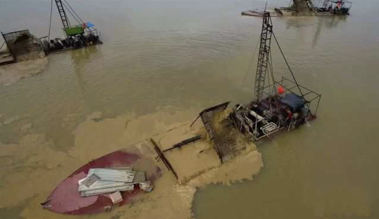 ??谑行阌^東山鎮的建及砂場,采砂船在進行作業。