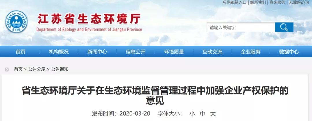 近日江蘇省生態環境廳出臺《關于在生態環境監督管理過程中加強企業產權保護的意見》,通過對守法企業無事不擾,標桿企業豁免,嚴禁環保“一刀切”,保護企業產權。