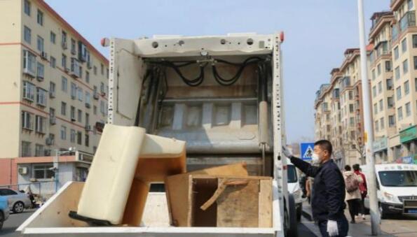 今年,威海環翠區環境衛生服務中心引進威海第一臺大件垃圾破碎回收車,該車采用國Ⅵ標準,壓縮比達到6:1,有效解決了這一難題。在四方路,記者看到,一輛容量大件垃圾回收車正在作業,只見工作人員把舊沙發、床板等垃圾擺放在平板處,收運車便張開 “大嘴”,把它們全部吃進了“肚子里”進行壓縮。不一會工夫,這些大件垃圾就被分解完了,相比人工拆解效率大大提高。