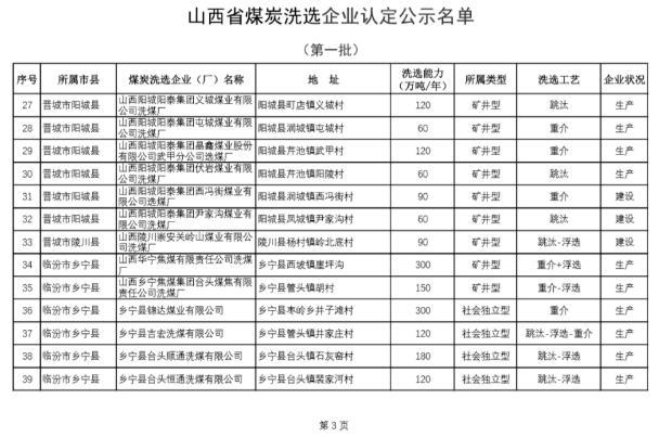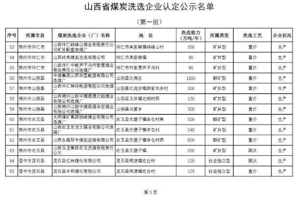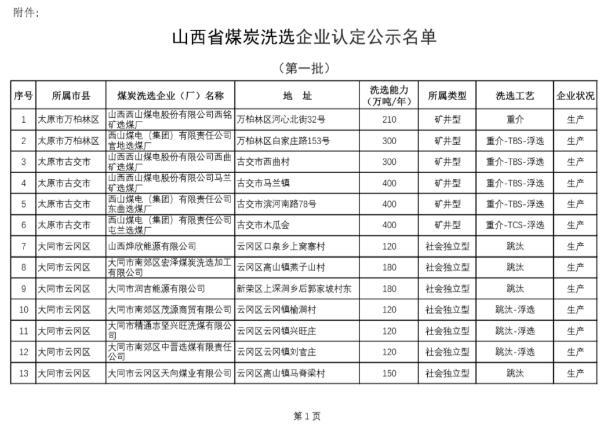 日前,省能源局公布了第一批山西煤炭洗選企業認定名單,涉及7個地市65家企業入選。