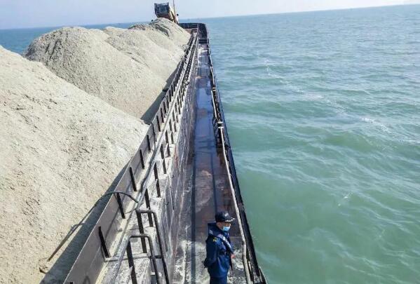 4月15日1520時,執法人員在與福建寧德交界的蒼南北關島水域發現一艘7000噸級砂石運輸船舶,疑似為參與涉海運輸的內河船舶。