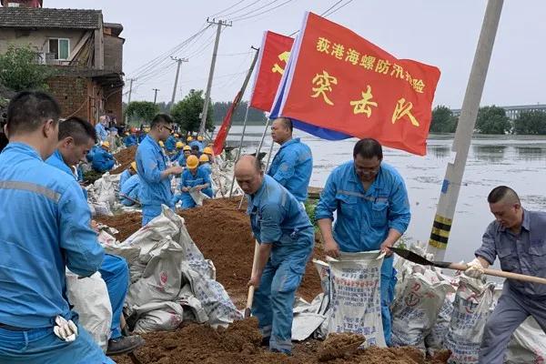 集團下屬企業都主動參與到當地防汛救災中。近日,荻港海螺嚴格按照繁昌縣防汛指揮部統一部署,抽調100余名員工參與到當地防汛搶險工作中,連續加班至深夜,圓滿完成了荻港鎮慶大圩子埂250米河堤加固任務,配合荻港鎮政府開展蘇保圩河堤加固、填裝防汛沙袋,并安排人員24小時輪流值守,協助地方做好巡堤和緊急情況處置工作,共同筑起防汛救災的堅固防線。