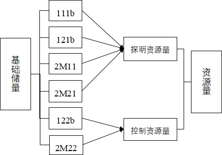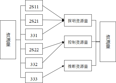 (三)將老分類標(biāo)準(zhǔn)中的各類資源量按照地質(zhì)可靠程度轉(zhuǎn)換為新分類標(biāo)準(zhǔn)的探明資源量、控制資源量和推斷資源量(圖3)。