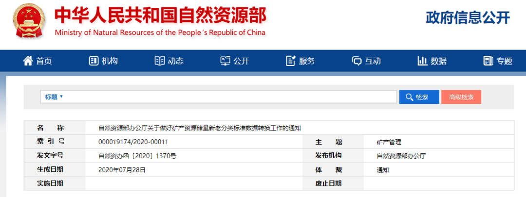自然資源部辦公廳關(guān)于做好礦產(chǎn)資源儲量新老分類標(biāo)準(zhǔn)數(shù)據(jù)轉(zhuǎn)換工作的通知