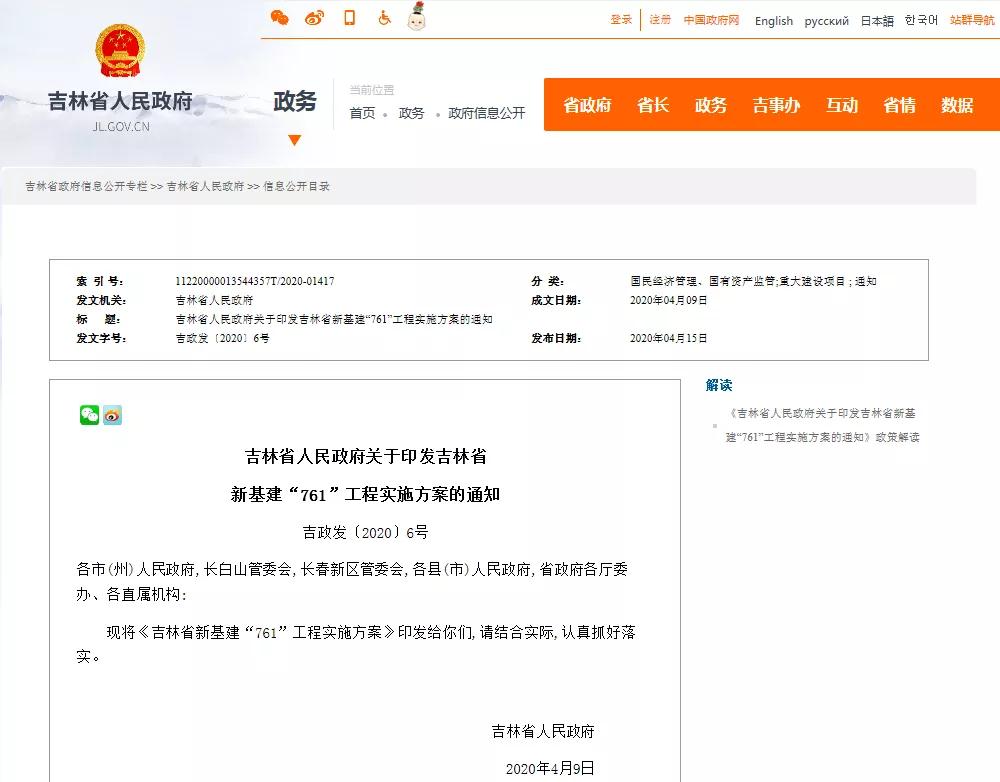 吉林省委常委第19次會(huì)議審議通過(guò)了《吉林省新基建“761”工程方案》。新基建計(jì)劃實(shí)施項(xiàng)目2188個(gè),總投資10962億元。其中:智能信息網(wǎng)839億元,路網(wǎng)5102億元,水網(wǎng)1308億元,電網(wǎng)477億元,油氣網(wǎng)198億元,市政基礎(chǔ)設(shè)施網(wǎng)2117億元,社會(huì)事業(yè)補(bǔ)短板921億元。