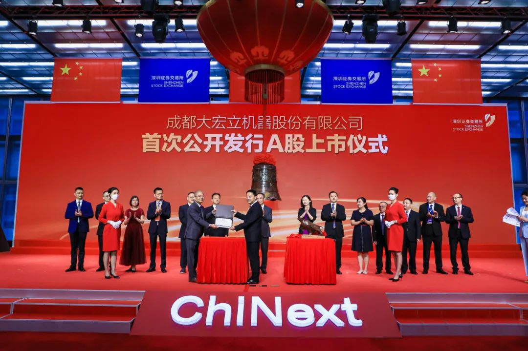 2020年8月24日,伴隨著響亮的敲鐘聲,成都大宏立機(jī)器股份有限公司(股票代碼:300865,股票簡(jiǎn)稱:大宏立),在深交所創(chuàng)業(yè)板正式掛牌上市,成為創(chuàng)業(yè)板注冊(cè)制改革后首批18家上市企業(yè)之一。此次公開(kāi)發(fā)行新股2392萬(wàn)股,每股發(fā)行價(jià)20.20元。掛牌首日,大宏立收盤(pán)價(jià)格為66.00元,漲幅226.73%。